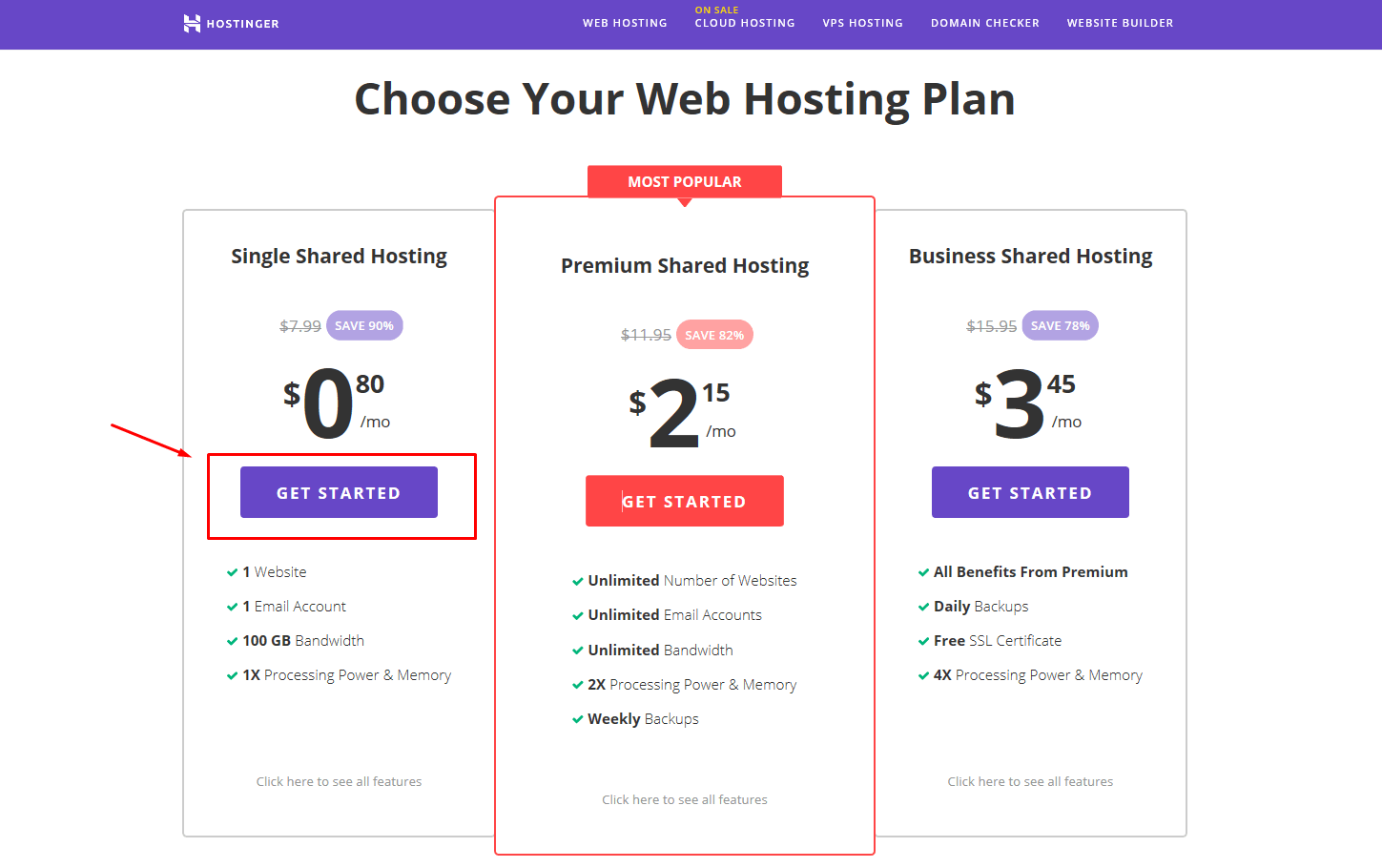 Hostinger cung cấp bốn gói lưu trữ VPS. Điểm khác biệt chính giữa các gói là lượng RAM, dung lượng lưu trữ, băng thông và sức mạnh CPU được cung cấp. Nếu bạn cần nhiều tài nguyên hơn so với gói hiện tại cung cấp, bạn có thể nâng cấp lên gói VPS Hostinger khác để truy cập thêm dung lượng lưu trữ, RAM hoặc băng thông.